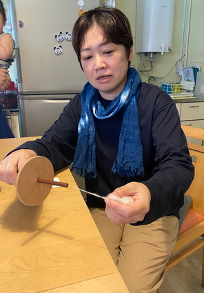 二つ目は綿と藍の栽培。畑で和綿、洋綿の栽培を手掛けています。収穫した綿を糸にし、藍で染め、布を織るワークショップを開催しています。さらに、近隣事業所の織物の材料としてチャコ村で紡いだ糸を使ってもらう計画を考案中です。