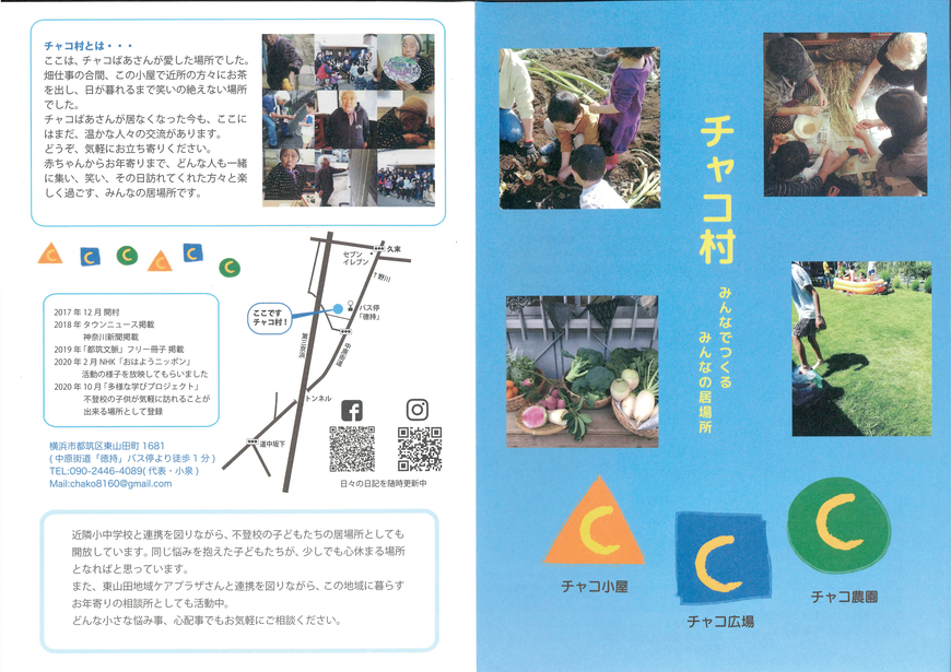 訪問したのは水曜でオープン日ではありませんでしたが、畑で作業している方がいたり、その脇を子どもたちが出入りしていたり、自由で伸びやかな雰囲気が伝わってきました。「自分たちがやりたいと思うこと、面白いと思うことを無理のない範囲でやっている」という小泉さん、小室さん。インタビューの間、様々な団体や人の名前がお二人の間をポンポン飛び交っていることが非常に印象的でした。地域の居場所として「チャコ村」が果たしている役割、愛される理由が分かった気がします。 (おおいけ れな)